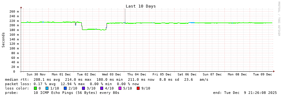 10 > 200.25.72.43 (200.25.72.43) [AS7195] 204.498ms 204.465ms 204.639ms